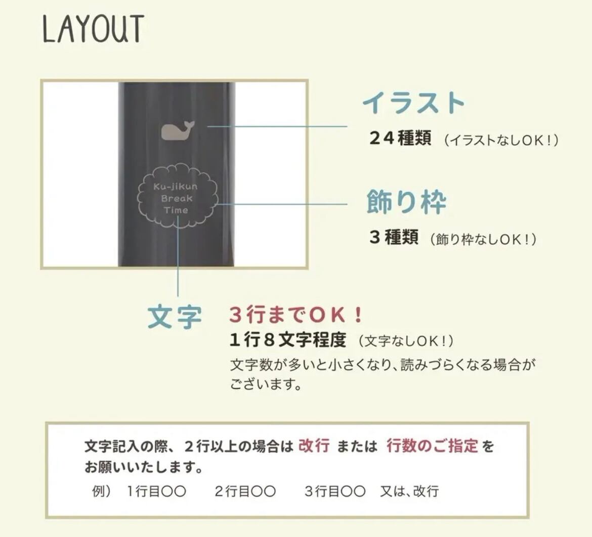 ※ 文字数が多いと小さくなり、読みづらくなる場合がございます。