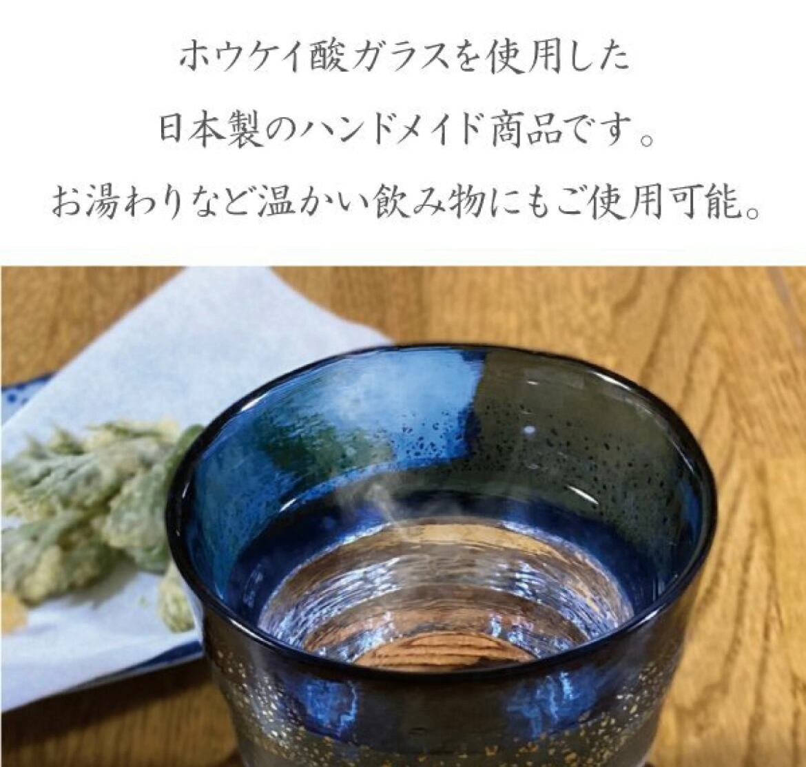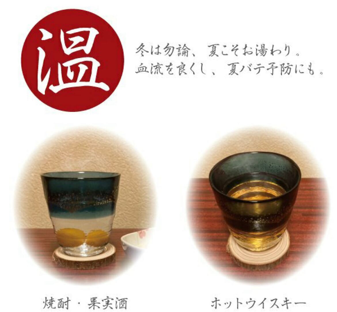 ホウケイ酸ガラスを使用。70℃程度の耐熱性能があり、お湯割りもお楽しみいただけます。